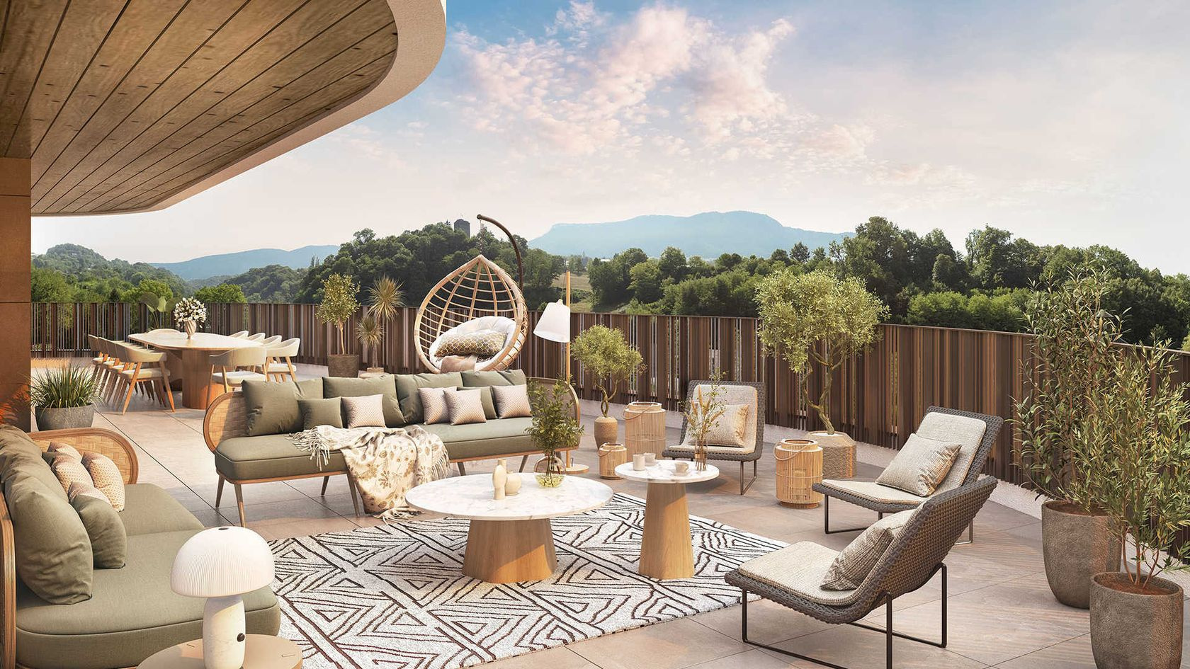 Résidence L'Eden Parc, composé de 79 logements, du T2 au T5, répartis sur trois bâtiments à l’architecture contemporaine. Dont 5 appartements de 2 pièces de 41m² à 43m². Compris entre 249.000€ et 269.000€. La majorité des appartements bénéficie d’une double orientation ou d’une configuration traversante, garantissant luminosité et confort de vie. Une toiture-terrasse végétalisée, visible depuis les hauteurs, participe à une intégration harmonieuse dans son environnement.