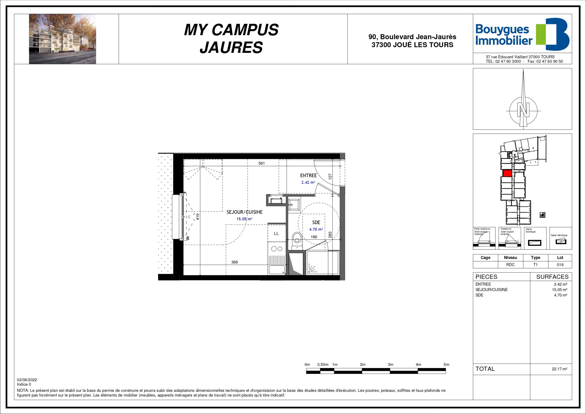 Situé à Joué-lès-Tours, boulevard Jean-Jaurès, au sein de la résidence récente My Campus Jaurès, ce studio de 23 m² représente une belle opportunité pour un premier achat ou un investissement locatif.