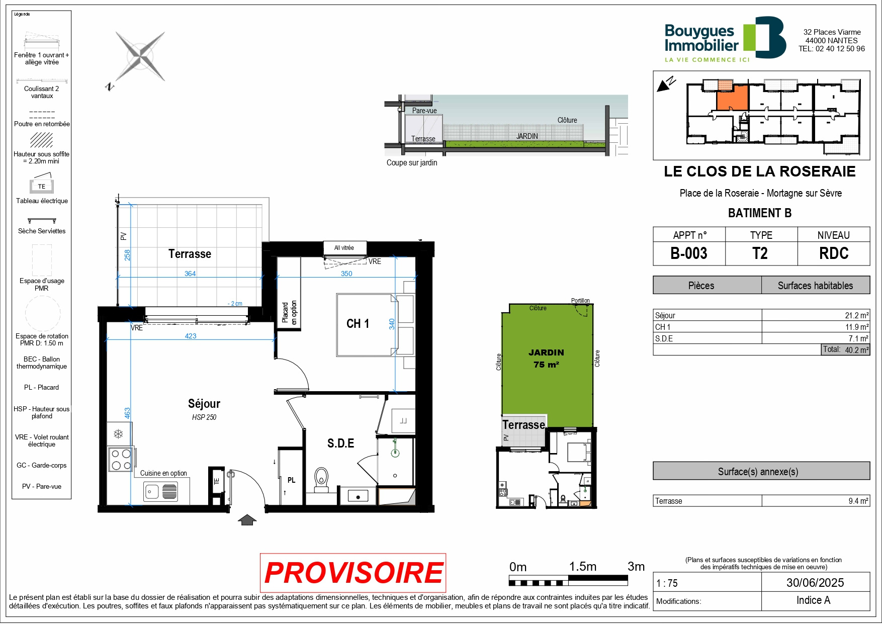Résidence Le Clos de la Roseraie composée de logements du 2 au 4 pièces, répartis sur deux bâtiments. Dont 7 appartements de 2 pièces, de 41m² 45m² et compris entre 149000€ et 166000€.
