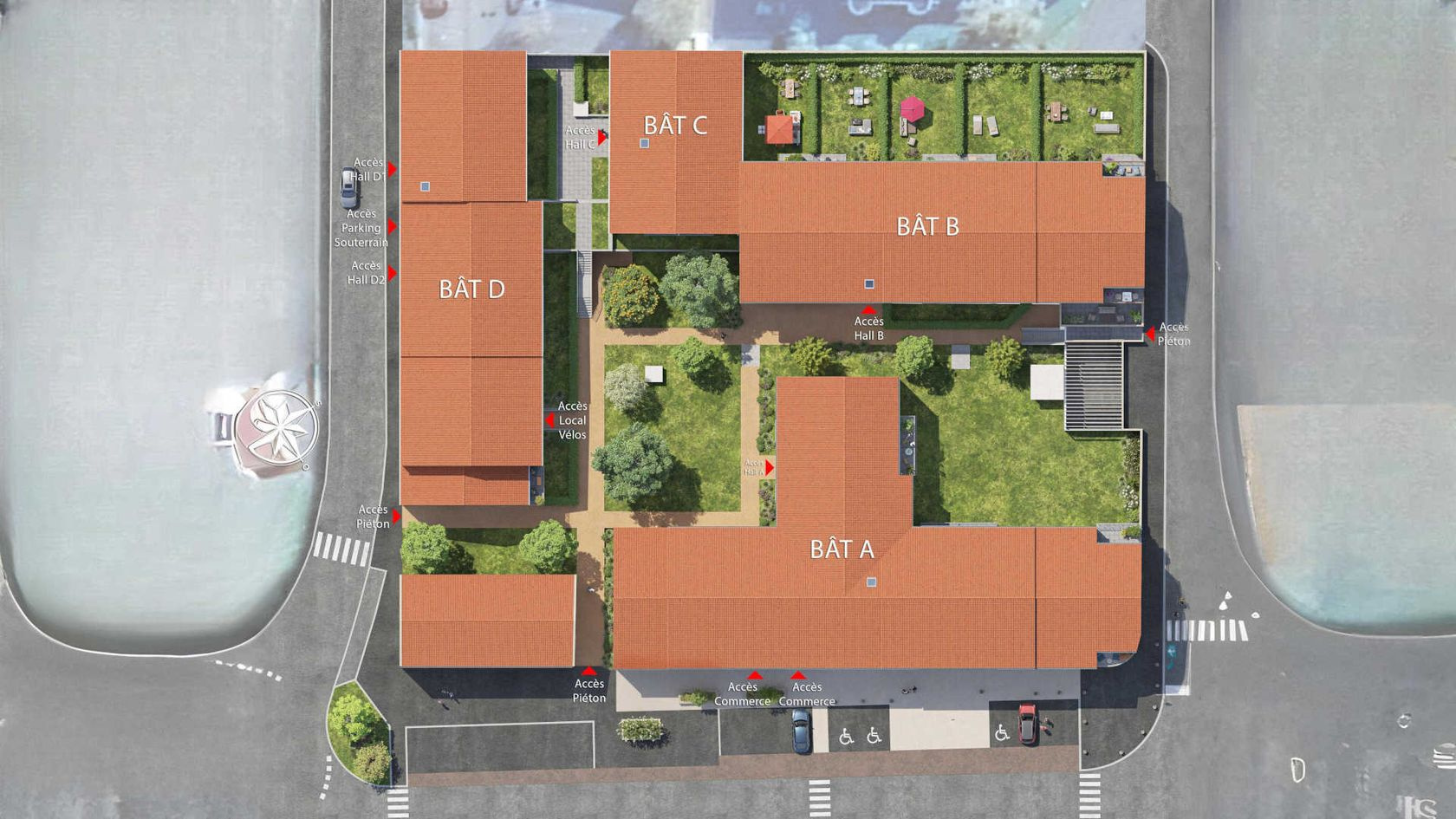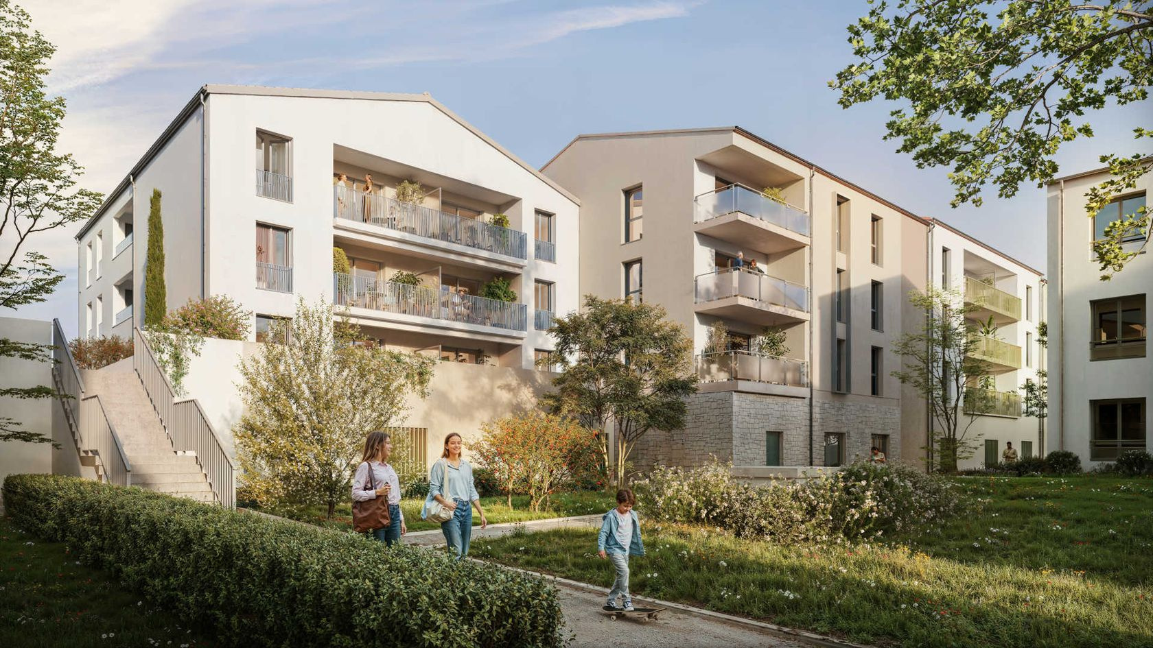 Chaque appartement dispose d’un espace extérieur privatif. Un stationnement en sous-sol est prévu pour chaque logement dès le T2.