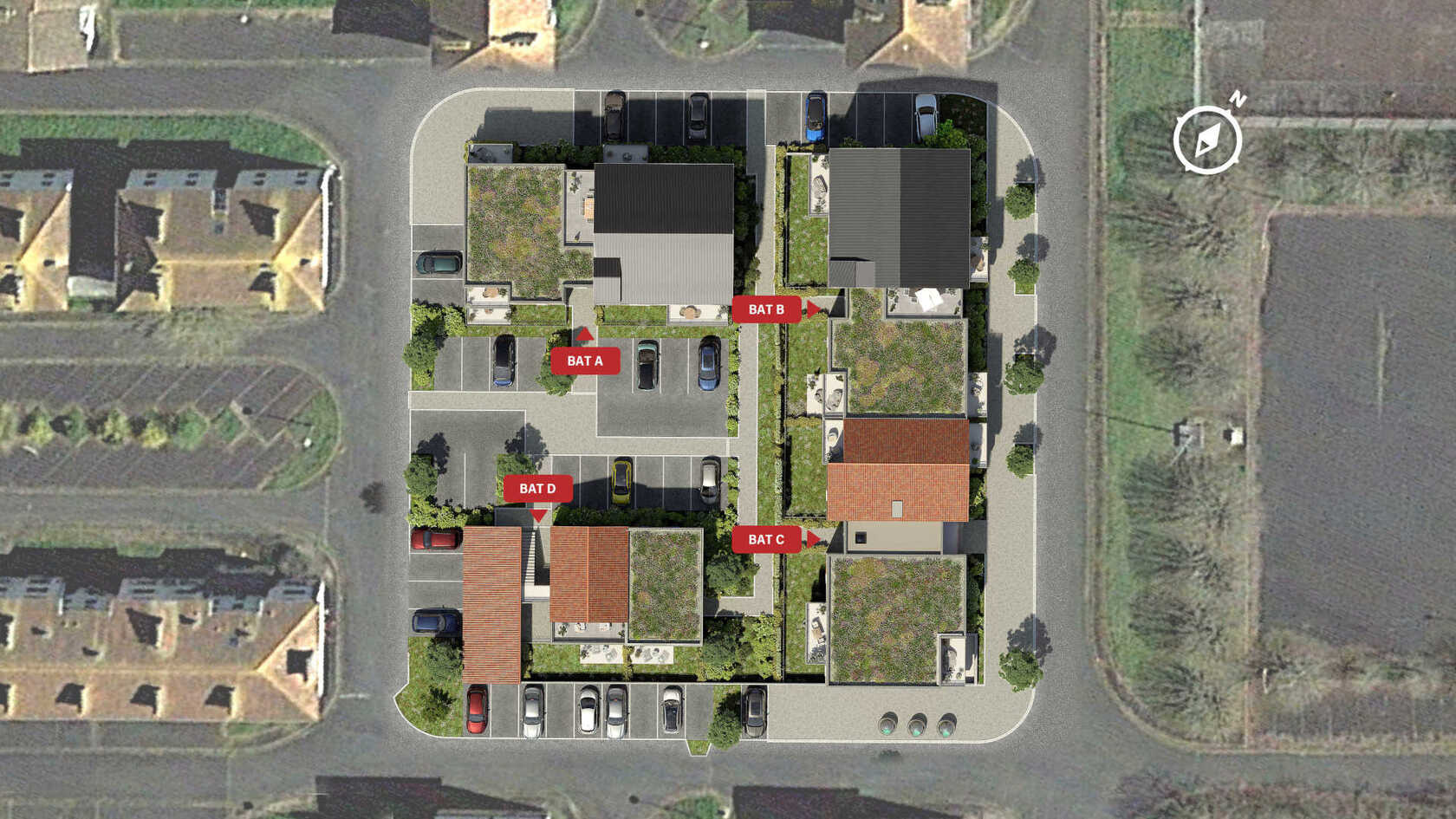 Chaque logement dispose d’un espace extérieur privatif sous forme de balcon, terrasse ou jardin. La résidence est implantée sur une parcelle de plus de 2 800 m².